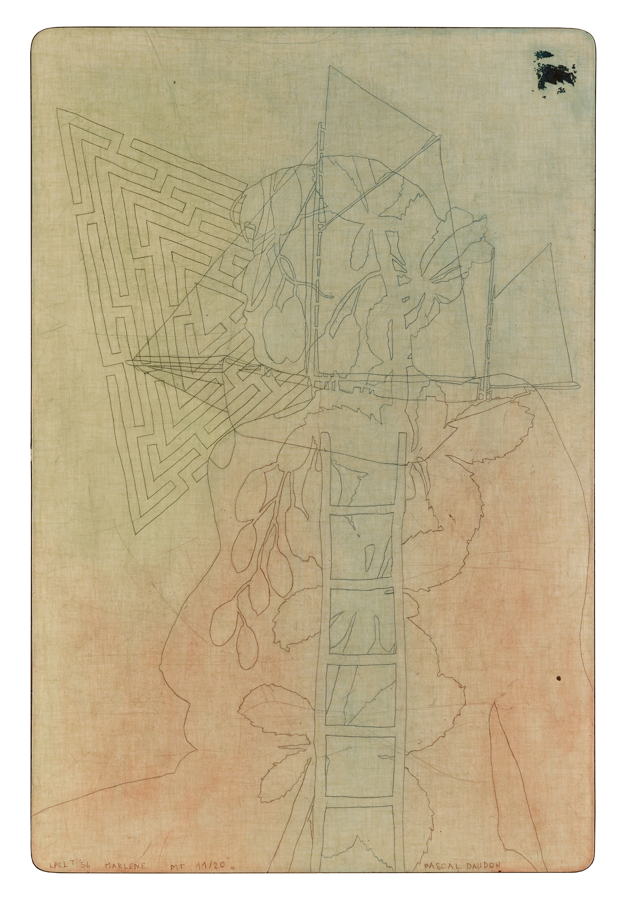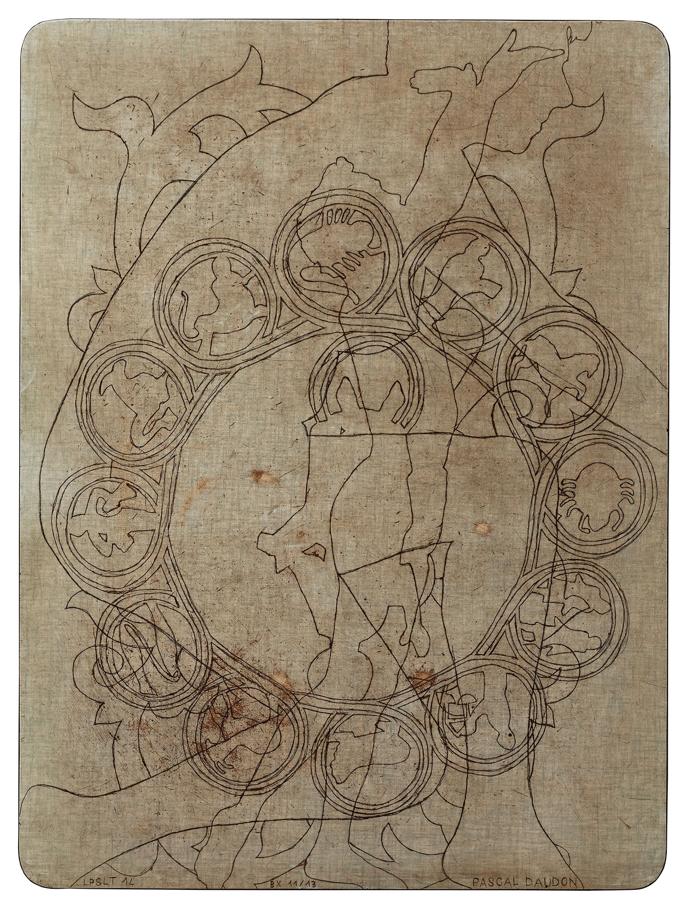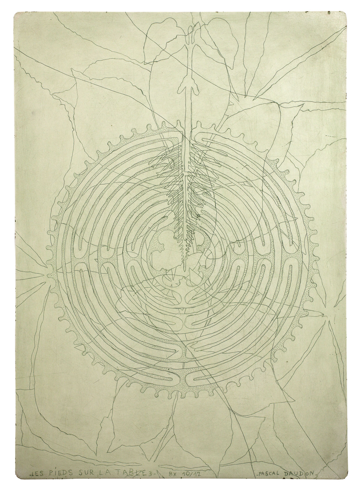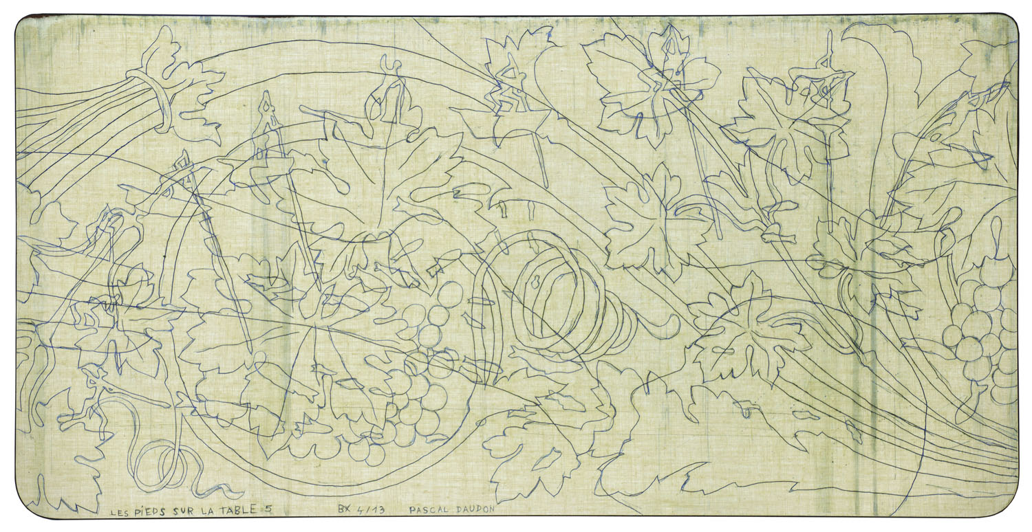 Les pieds sur la table (2012-2021) Série commencée fin 2012 Pièces gravées sur plateaux et rallonges de tables en formica Ombres portées de corps croisées de relevés archéologiques et ethnologiques, mes Palimpsestes Partager : Partager sur X(ouvre dans une nouvelle fenêtre) X Partager sur Facebook(ouvre dans une nouvelle fenêtre) Facebook J’aime chargement…