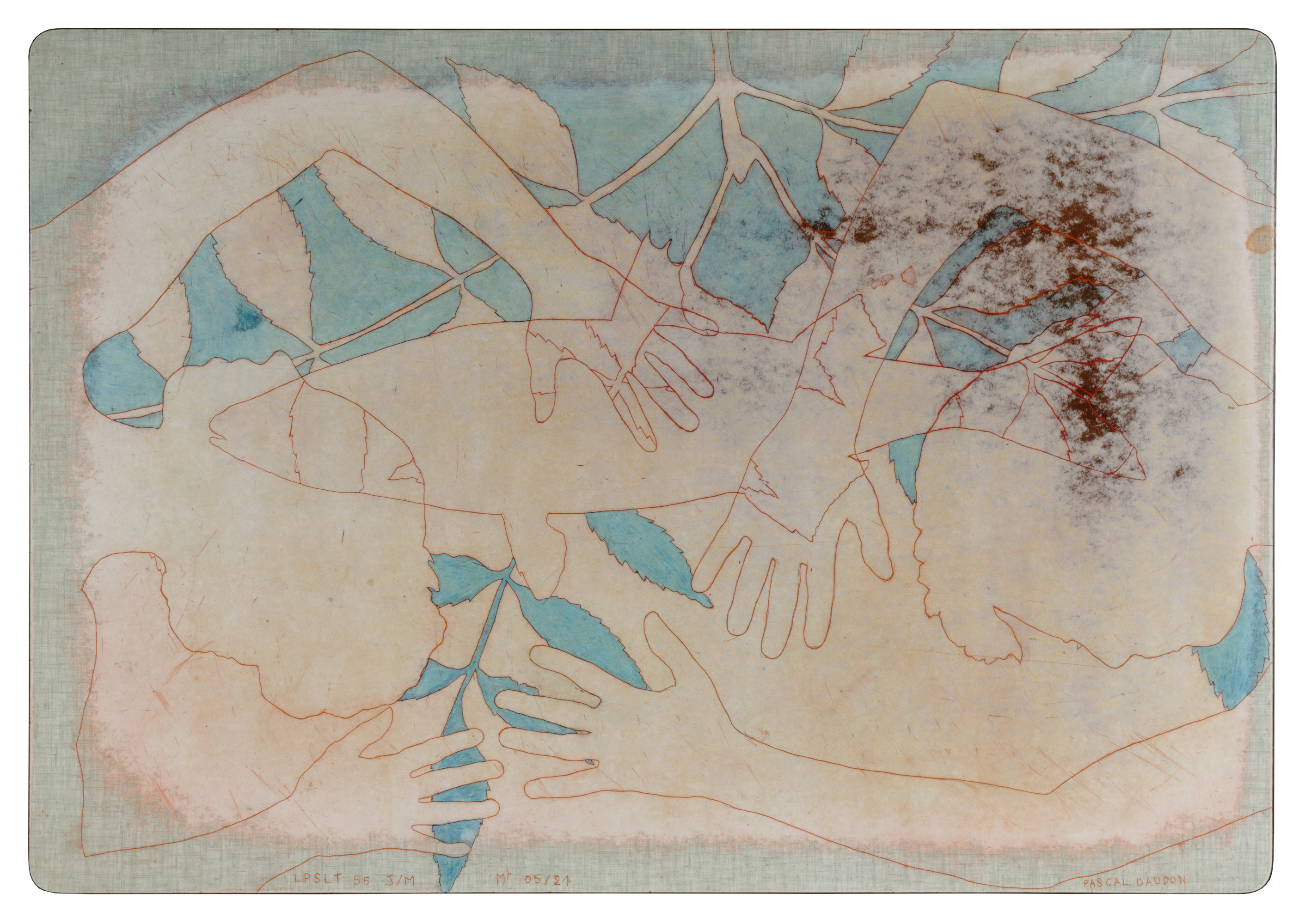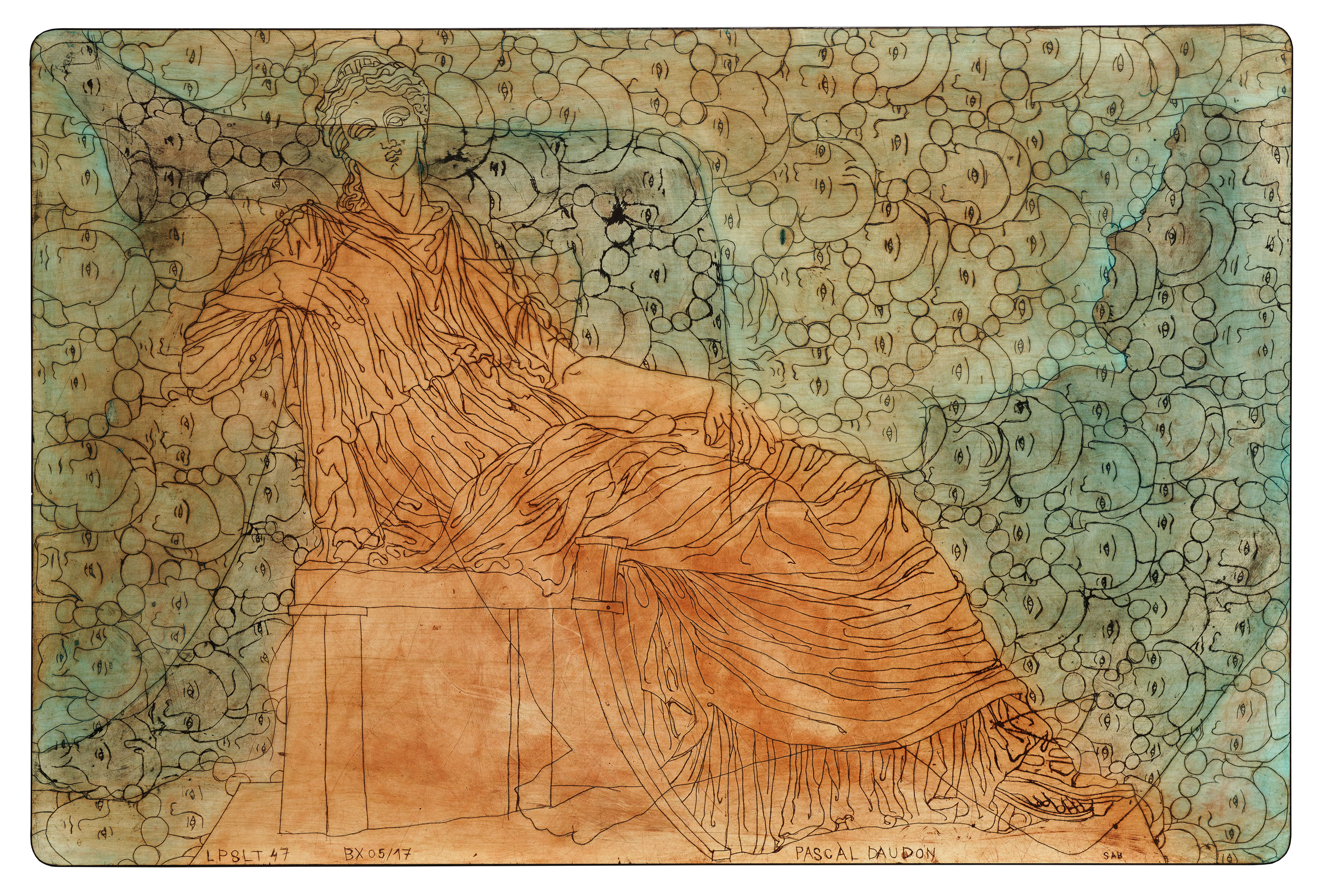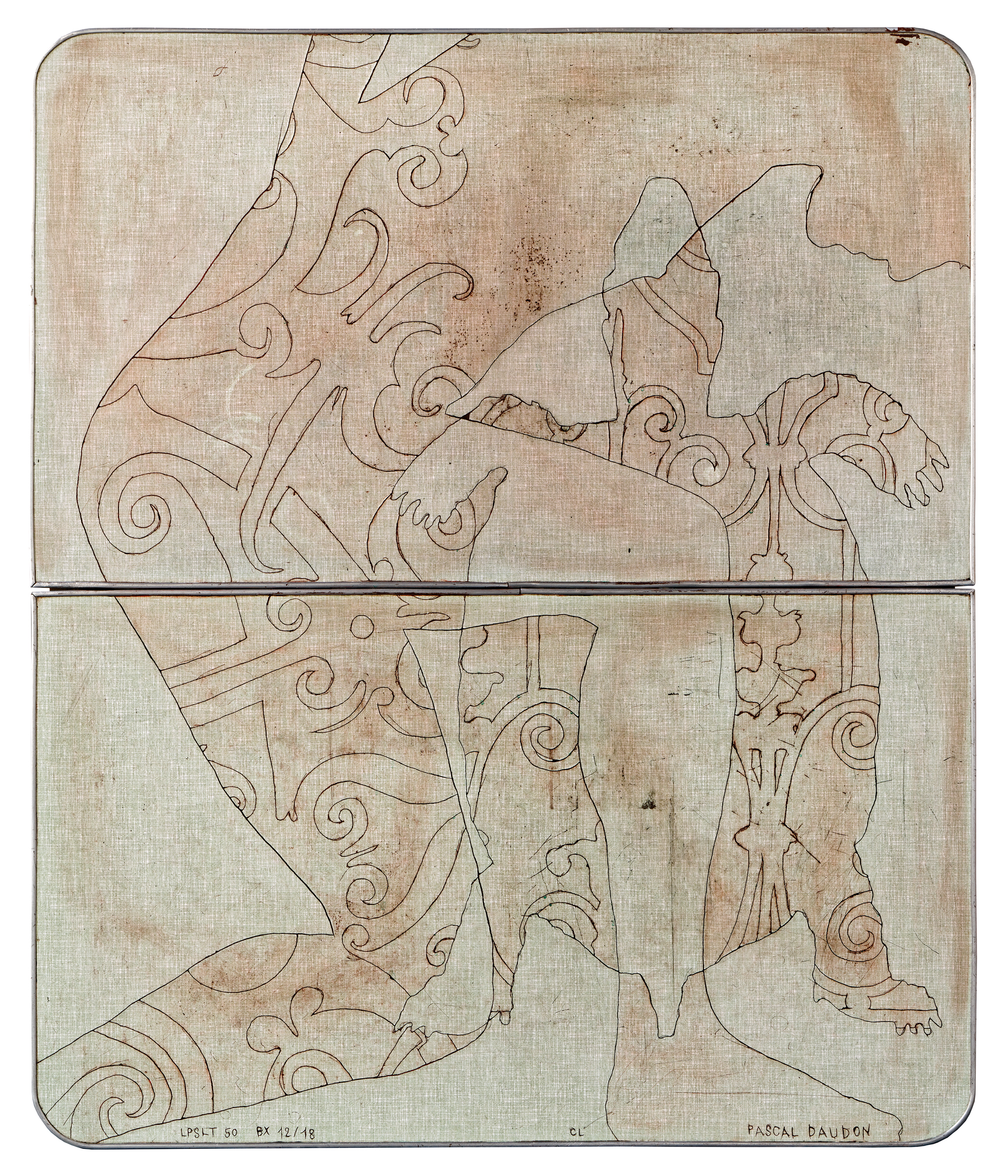 Les pieds sur la table (2012-2021) Série commencée fin 2012 Pièces gravées sur plateaux et rallonges de tables en formica Ombres portées de corps croisées de relevés archéologiques et ethnologiques, mes Palimpsestes Partager : Partager sur X(ouvre dans une nouvelle fenêtre) X Partager sur Facebook(ouvre dans une nouvelle fenêtre) Facebook J’aime chargement…