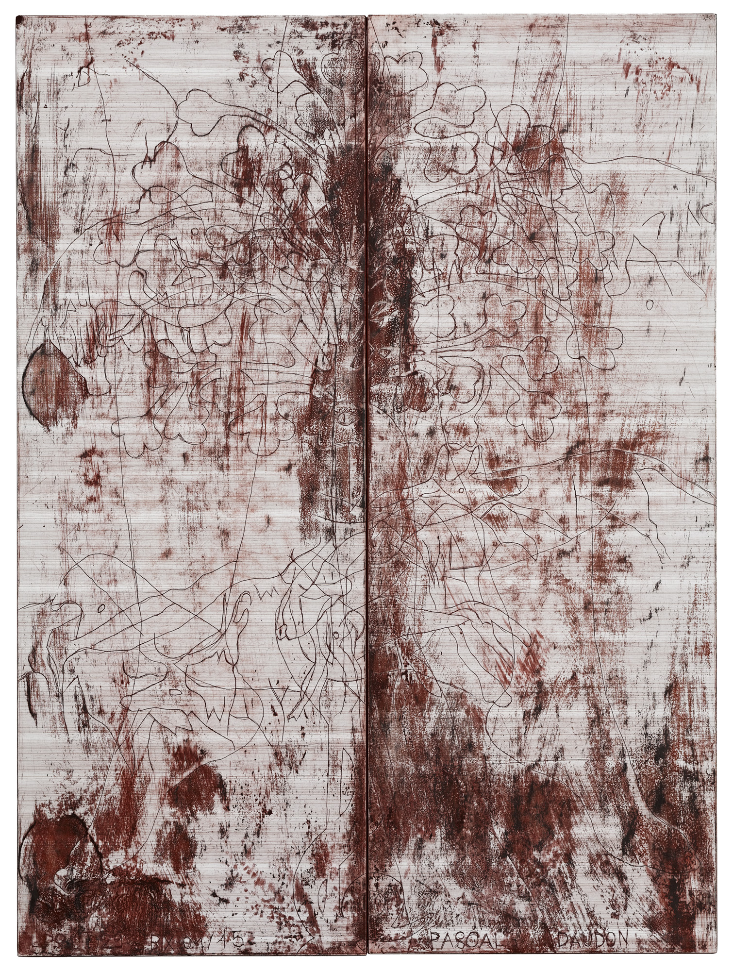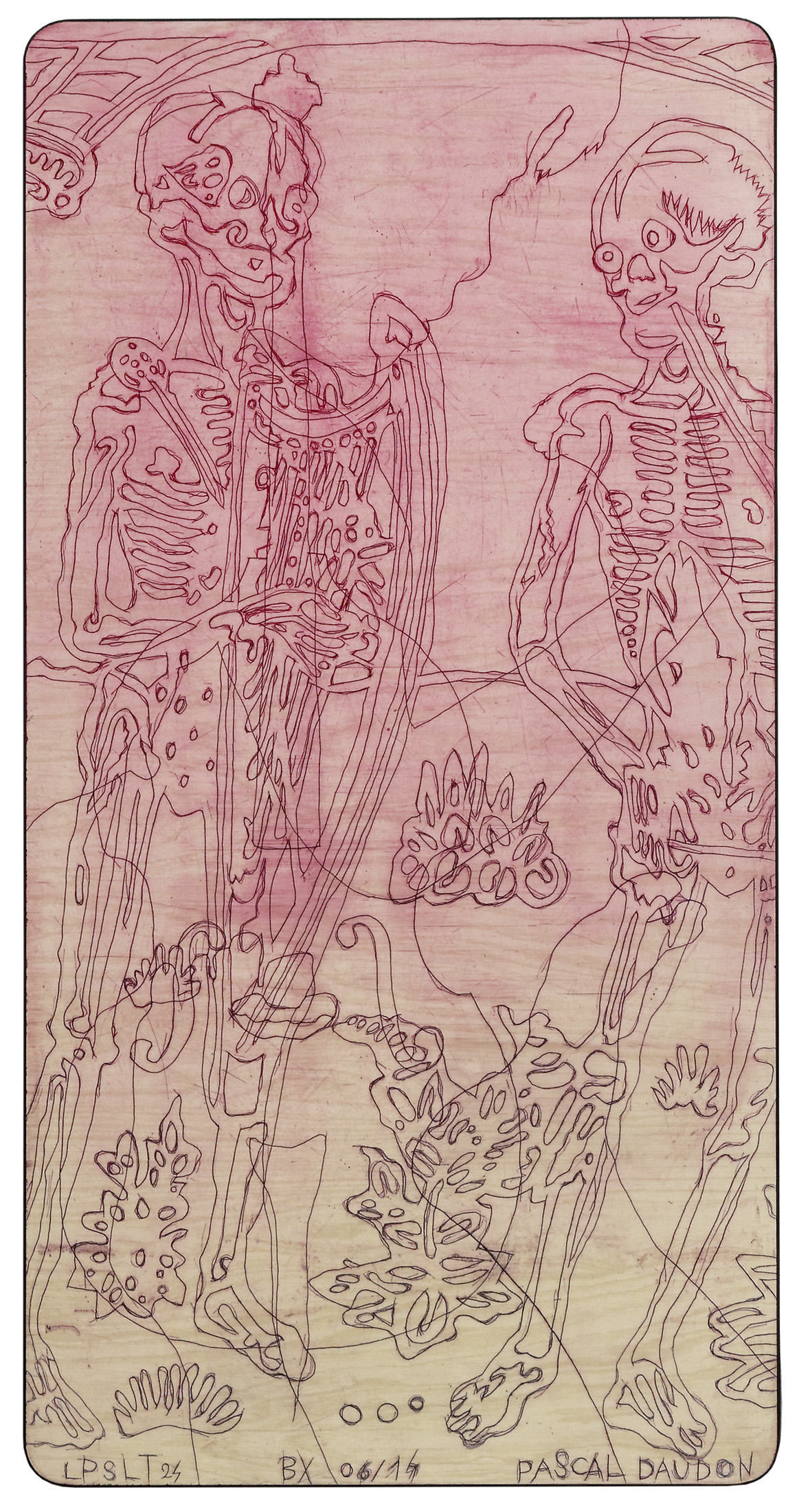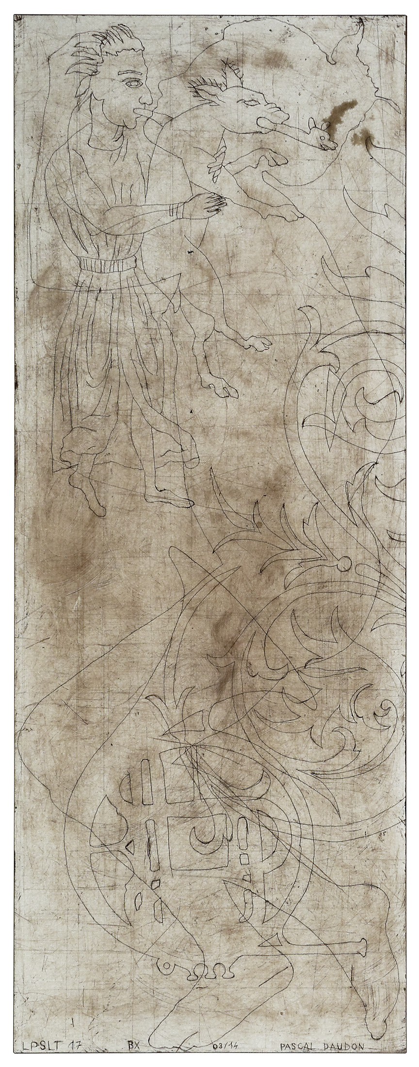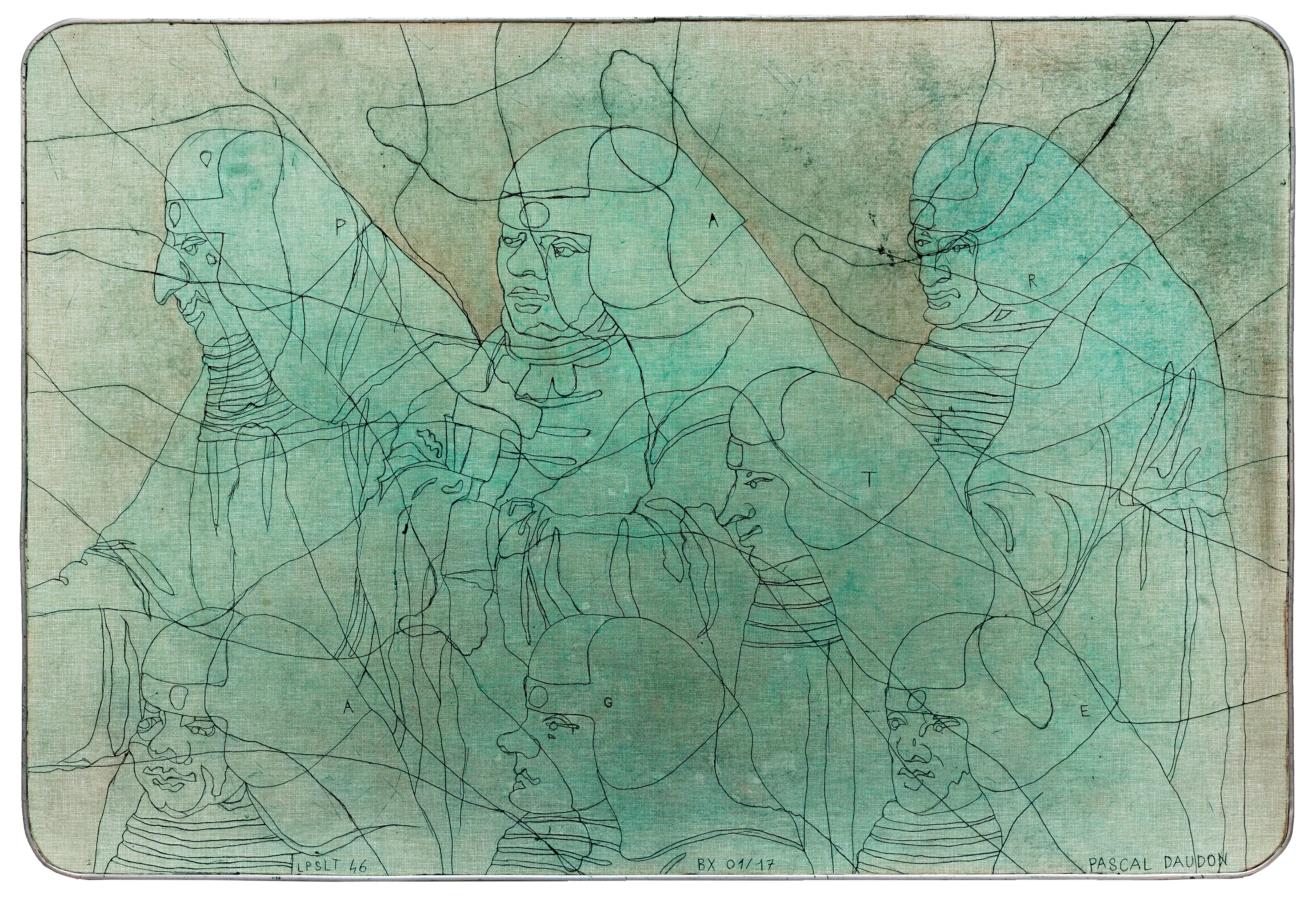 Les pieds sur la table (2012-2021) Série commencée fin 2012 Pièces gravées sur plateaux et rallonges de tables en formica Ombres portées de corps croisées de relevés archéologiques et ethnologiques, mes Palimpsestes Partager : Partager sur X(ouvre dans une nouvelle fenêtre) X Partager sur Facebook(ouvre dans une nouvelle fenêtre) Facebook J’aime chargement…